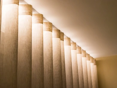 For the most elegant result, install the DS-XL® LED with ceiling brackets so the track fits seamlessly against the ceiling. Combine it with our FES system for wave pleat to create a beautifully uniform look. We also recommend using lighter, thinner fabrics to let the light gently shine through.
