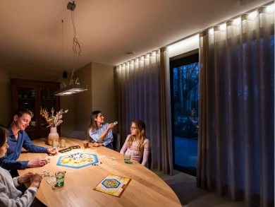 Not sure what a curtain track with lighting looks like? Take a look at the inspirational images below. The integrated LED lighting creates a soft, warm glow on the curtains for a stylish, cozy effect.