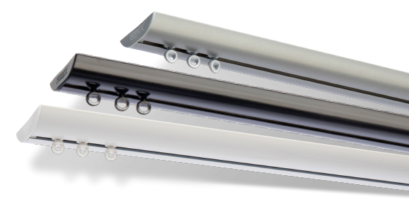 Well designed curtain track systems. All our hand drawn systems are highly efficient and for all types of heavy and light weight draperies.