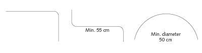 The rail can be bent with a 20 cm radius. Continuous curving is possible with a minimum radius of 50 cm.