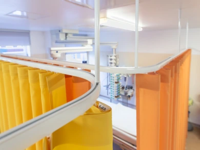 Medical curtain track system for all kinds of medical facilities and sanitary rooms. Also as flat and round track available. |