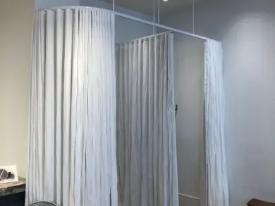 Our curtain tracks are ideally suited for fitting rooms, especially our separation rail MTS®. Why? Because the customer can change clothes comfortably, as privacy is guaranteed.