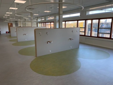 This MTS® separation rail is round. The rail is suitable for creating separate areas within a larger room.